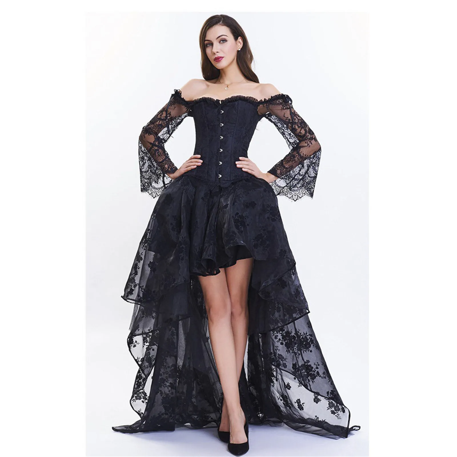 Женский корсет с открытыми плечами, длинное платье с цветочным принтом