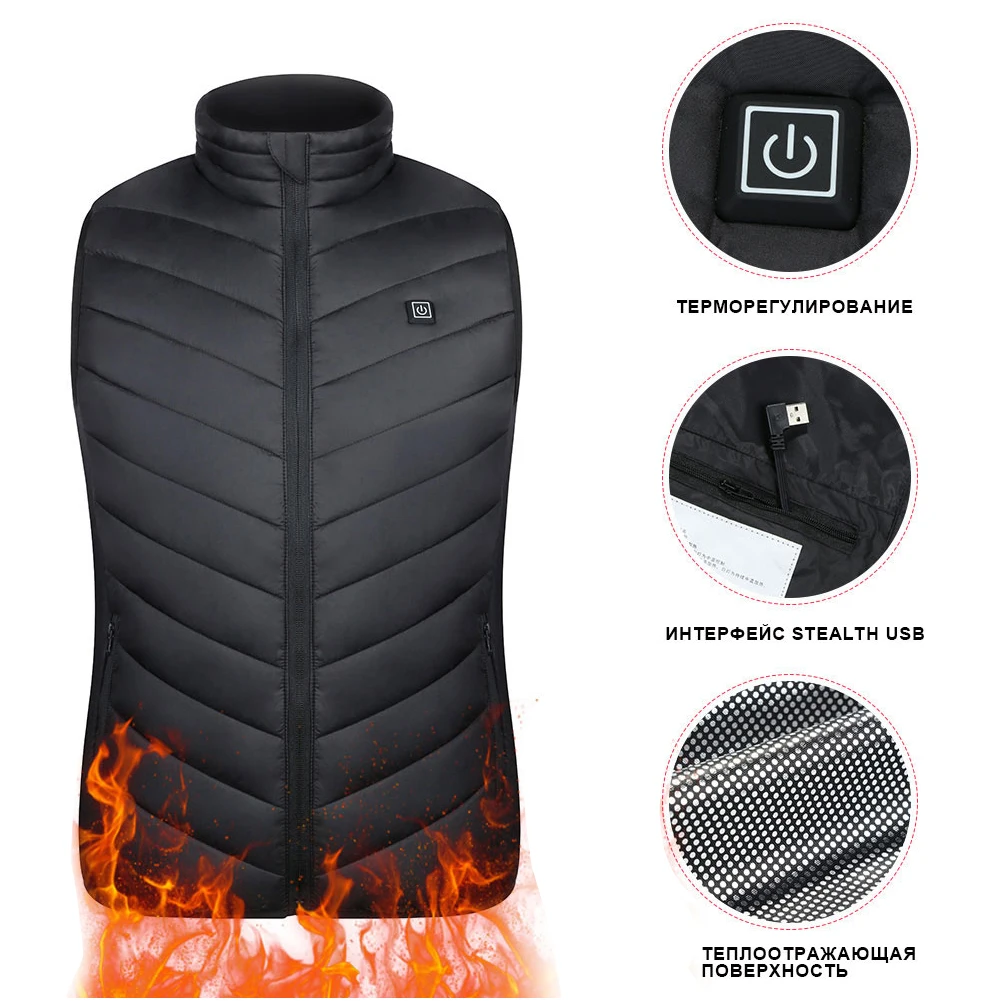 Жилет с подогревом мужской, зимняя безрукавка с электроподогревом, 9 зон, жилет для путешествий и активного отдыха