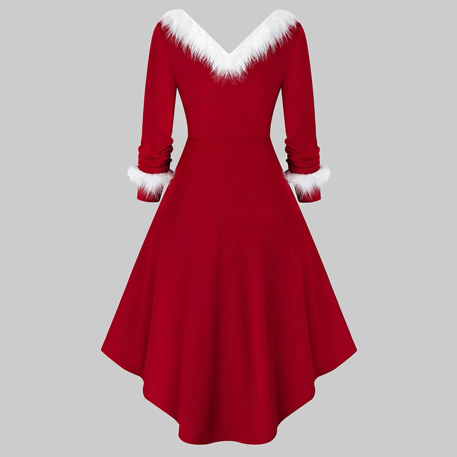 Для женщин Рождество из искусственного плюша Панель, с длинным рукавом и v-образным вырезом, воротник ассиметричное вечерние платье
