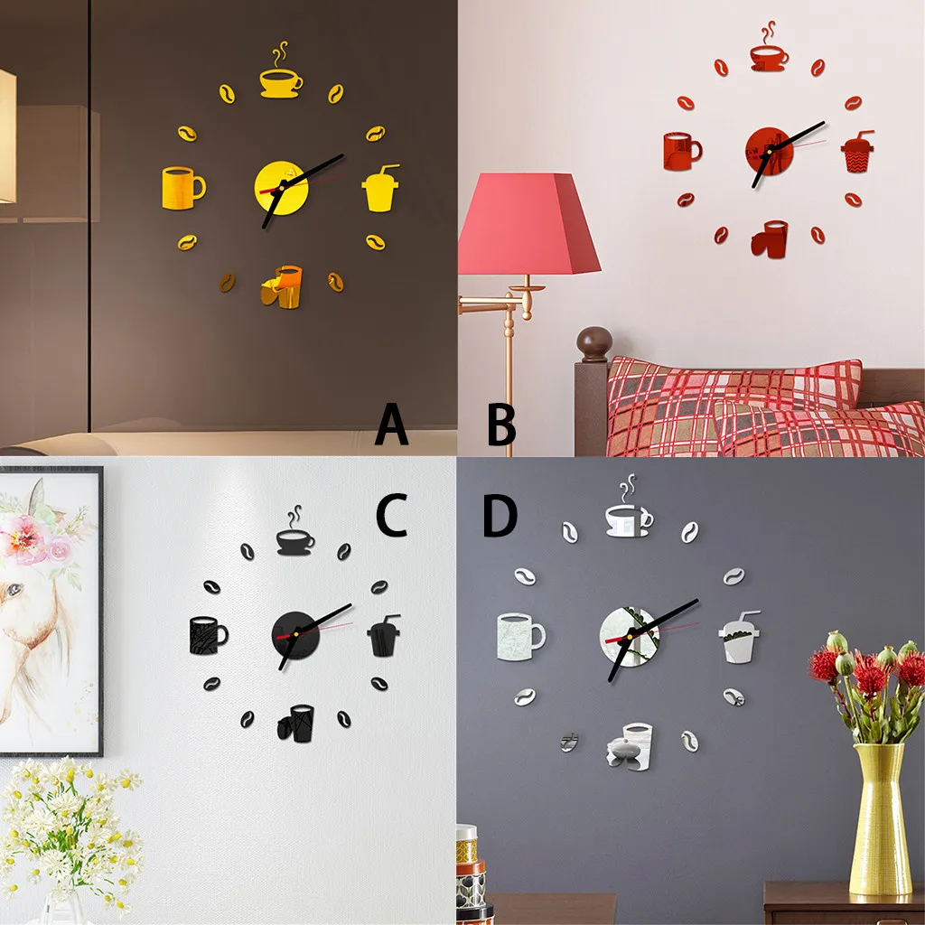 1 комплект Настенная Наклейка с зеркальным эффектом и часами (без аккумулятора)