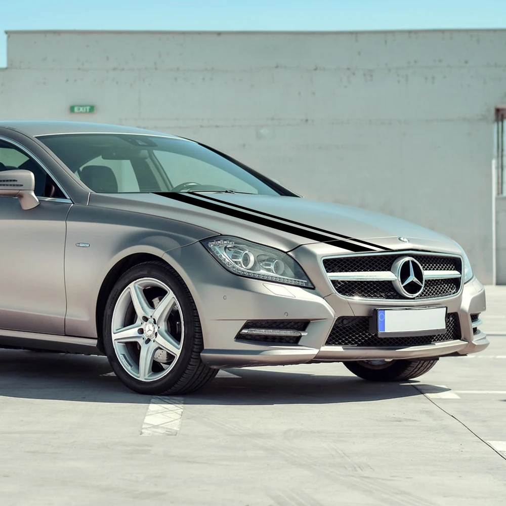 Виниловая наклейка на крышку капота автомобиля с длинными полосками...