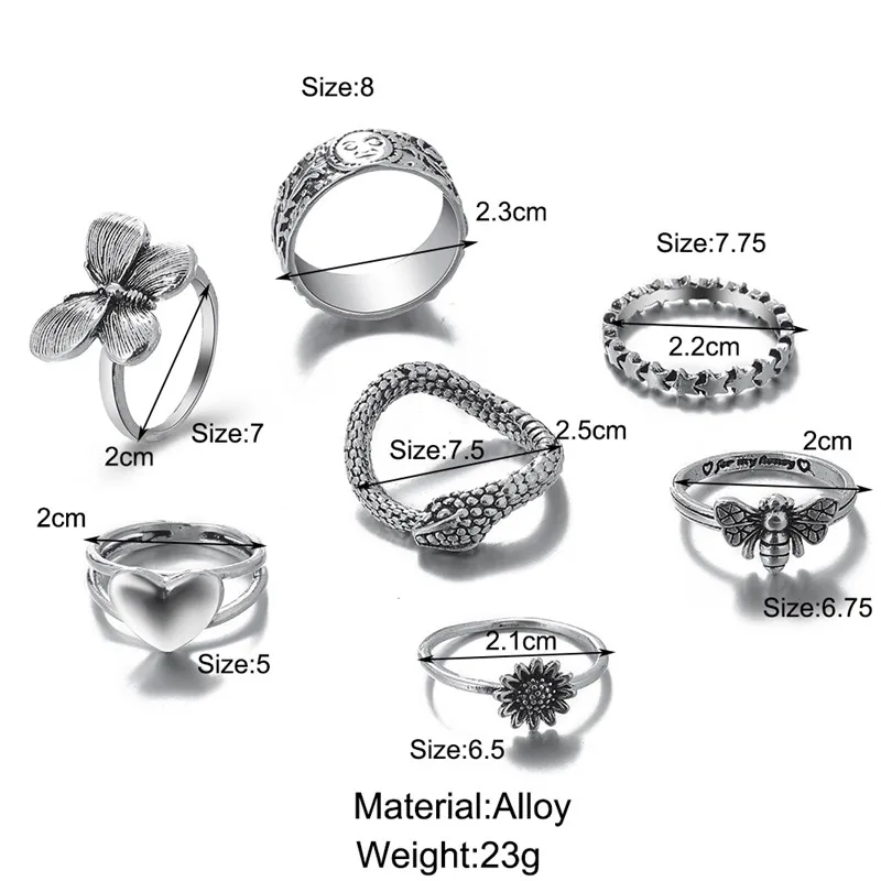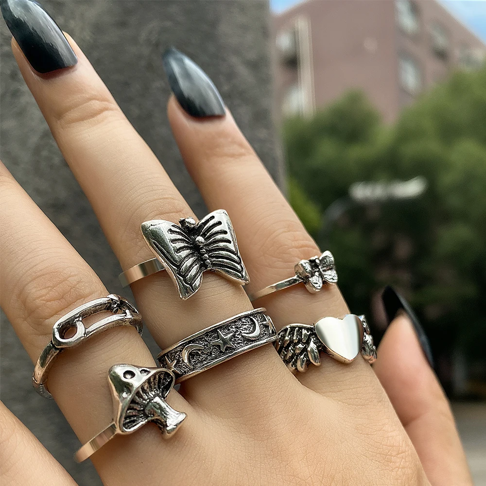 Набор колец для женщин, в стиле панк, в готическом и винтажном стиле