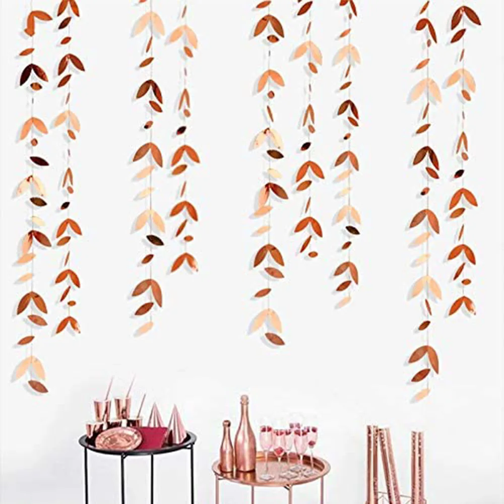 4 м вечерние украшения из розового золота, бумажные свадебные подвесные гирлянды, листья, стример, баннеры для дня рождения, помолвки, вечерние украшения для сада