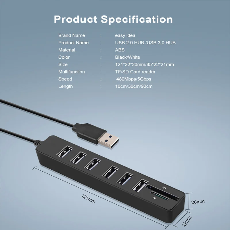 feature 4USB 2.0 HUB 8 Separator TF/SD Ultra-thin High Speed Indicator Light USB Hub