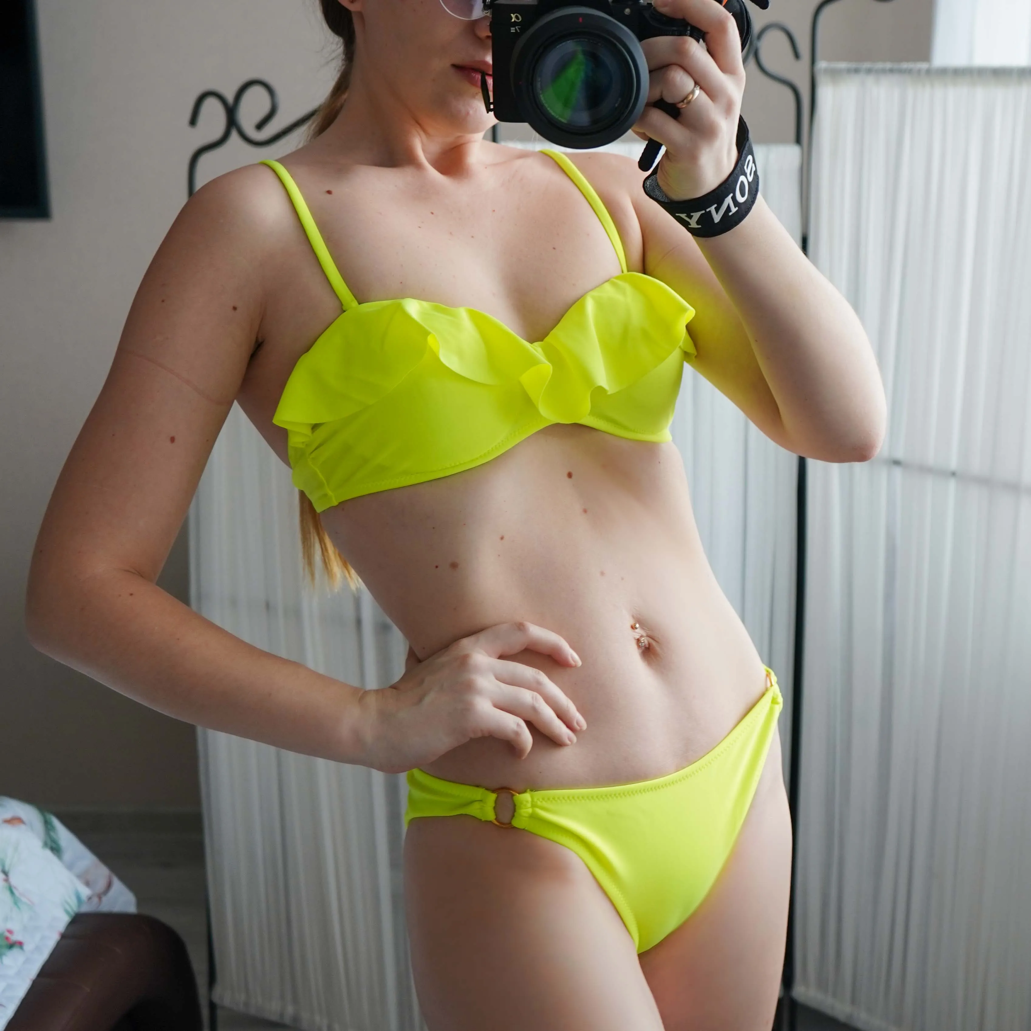Эта модель у меня уже в трёх расцветках, настолько мне она нравится. Лиф с широкой оборкой, можно носить как бандо - лямки съёмные. Есть небольшой пушап по нижней части чашек. Лиф с чашками на косточках, завязывается на спинке. Размер М на 87-67-95 садится точно в размер. На бОльшие параметры не подойдёт. Ну, если только в груди плюс пара см. Ткань хорошая, пошив аккуратный. Плавки с подкладкой. Посадка около 22 см. Измерения на фото. Подобная модель уже побывала со мной в отпусках, отлично перенесла море, бассейн, стирки. Форму и цвет не теряет. Отправка на следующий день после заказа, спасибо за оперативность.