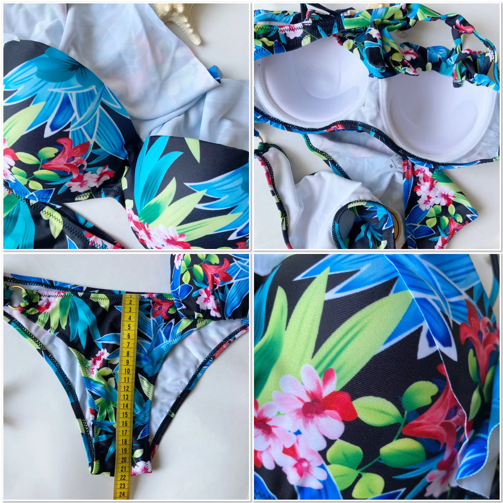 Бикини пуш-ап женское, комплект бикини с оборками, купальник из двух предметов, Летний Пляжный купальный костюм, Размеры S XXL