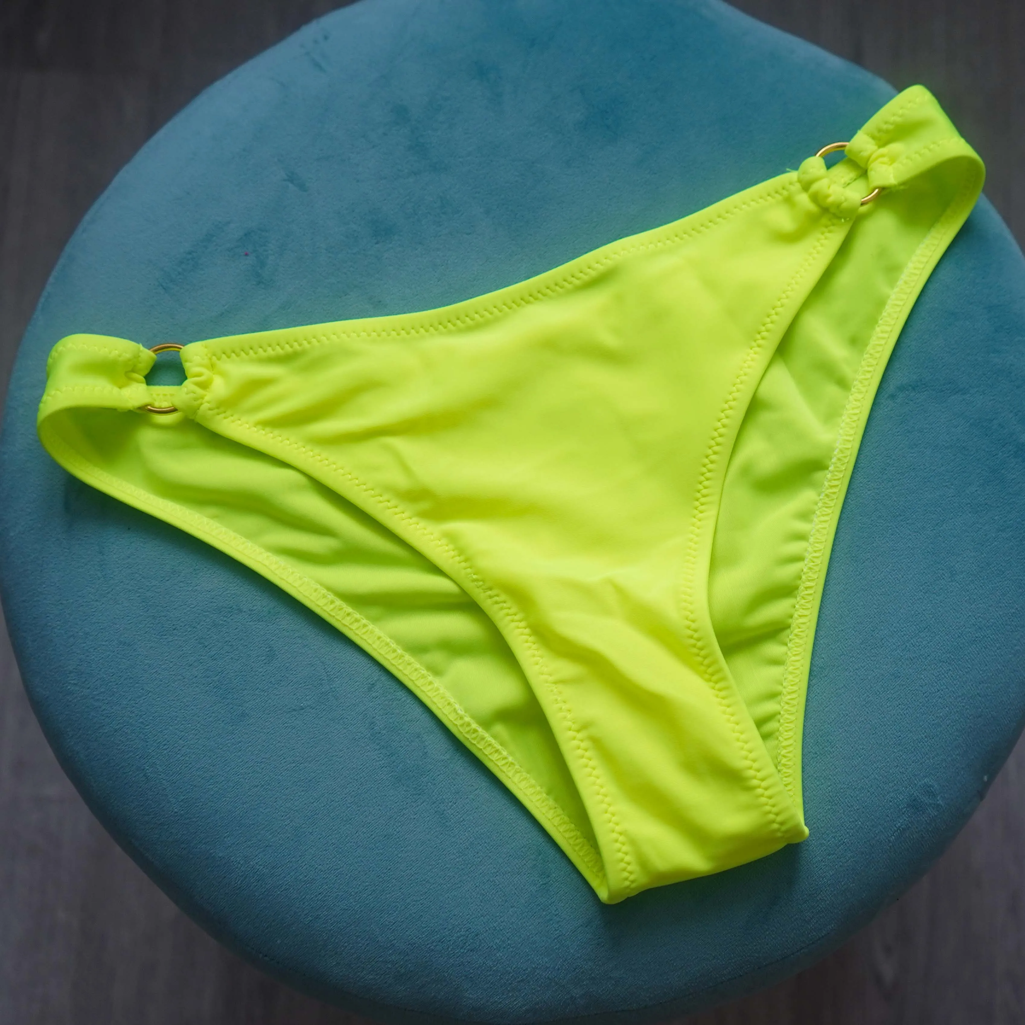 Доставка около двух недель. Я выбрала S и мне подошло на параметры 85-70-90, рост 163 см. Верх имеет жесткие чашечки с небольшим пуш-ап. Бретели регулируемые, тонкие. По объему - завязка. Украшение - оборка. Трусики средней посадки. Спереди белая подкладка. Декор в виде металлических колечек. Качество чудесное. Никаких изъянов я не обнаружила. Очень комфортная и симпатичная модель.