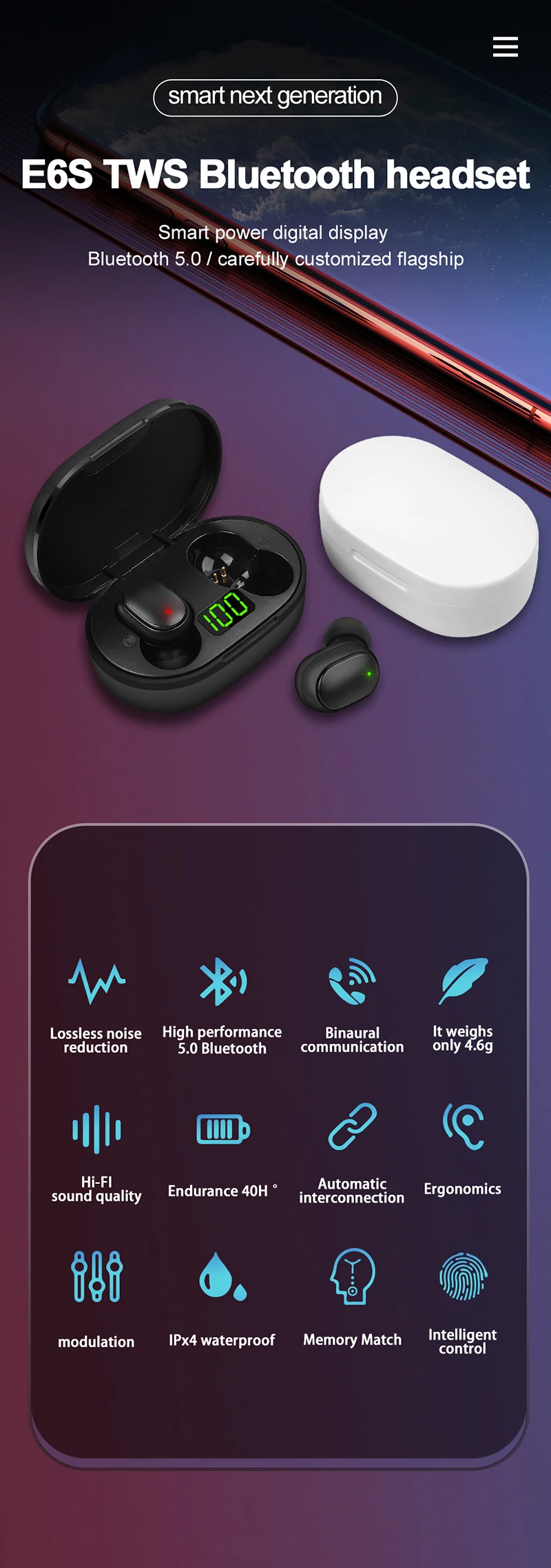 Беспроводные наушники E6SE8SA6S TWS, наушники бесповородные bluetooth, мини-наушники с шумоподавлением, игровая гарнитура с цифровым дисплеем наушники беспроводные блютуз наушники безпроводные наушники беспроводной