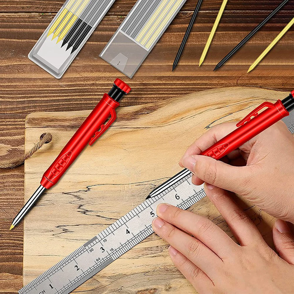 Маркерный инструмент для маркировки, набор твердых столярных карандашей с 6 заправляемыми выводами, встроенная точилка, механический карандаш с глубоким отверстием, маркер 45 мм