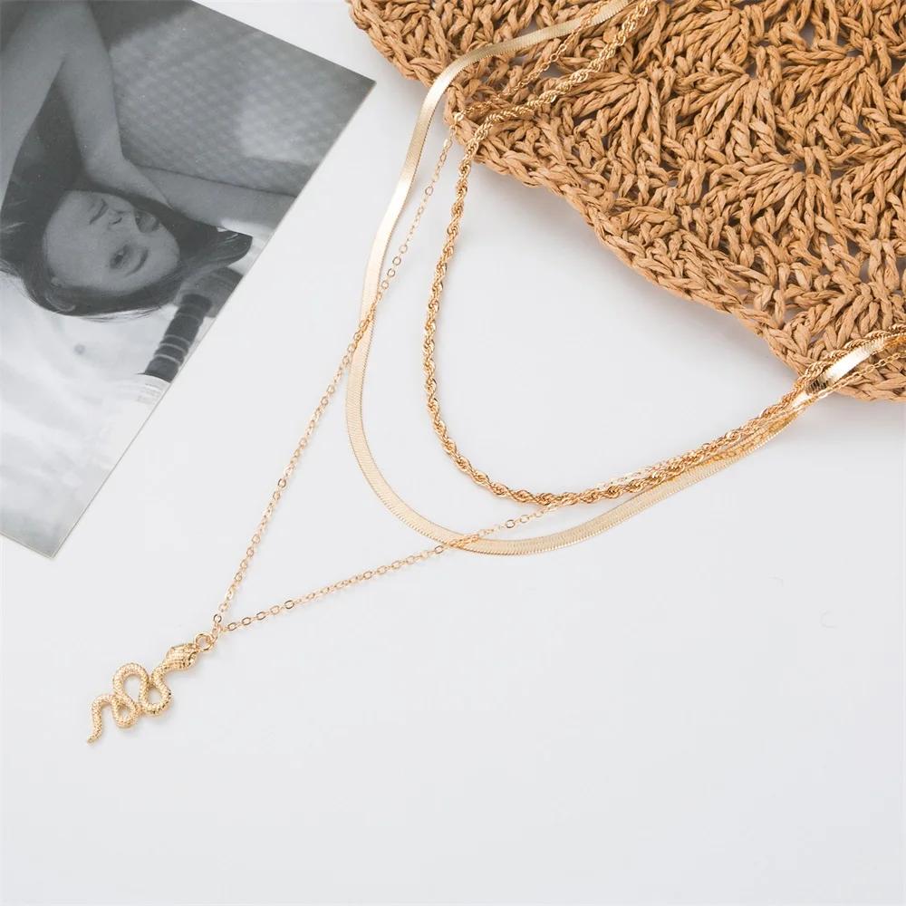 Ожерелье из сплава с подвеской в виде змеи, Женская цепочка-подвеск...
