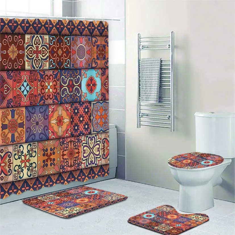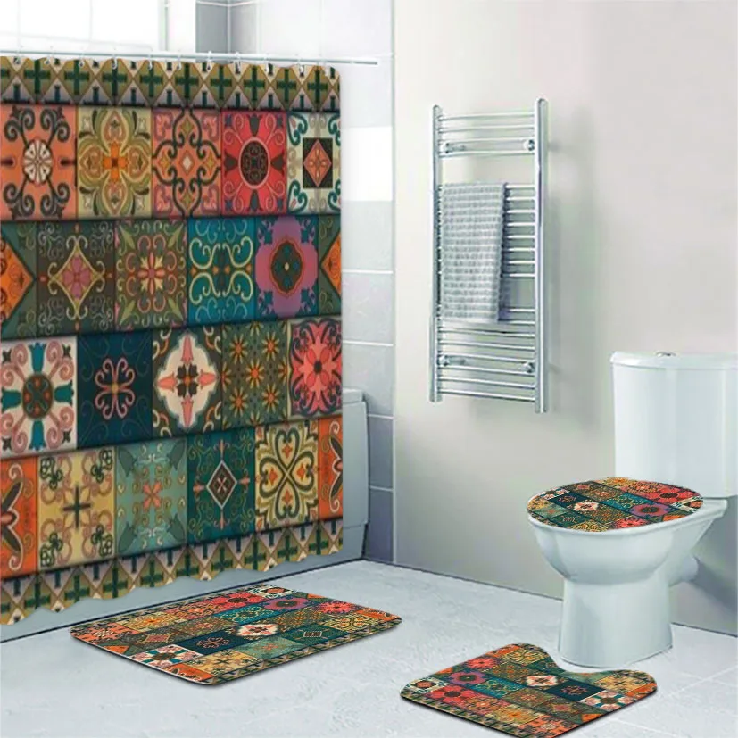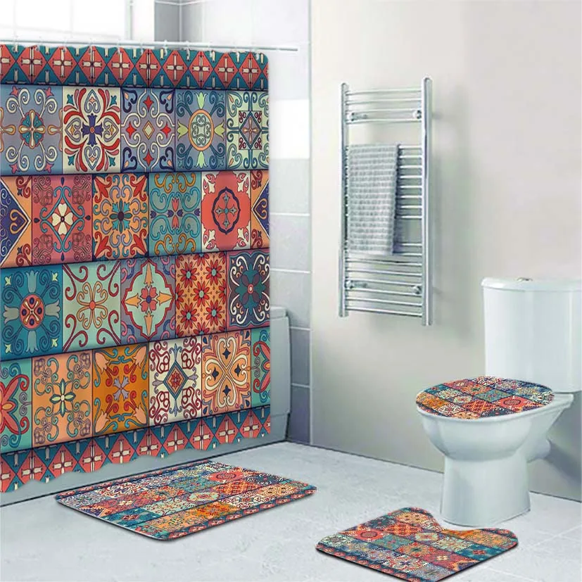 Talavera стиль португальский плитка душевая занавеска набор для ванной комнаты Azulejo марокканский мексиканский богато ванная коврики ковер туалетный Декор