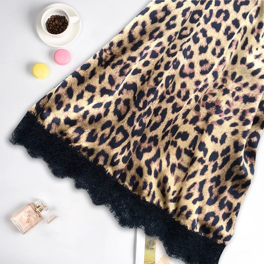 Пикантные женские пижамные комплекты с леопардовым принтом, атласна...