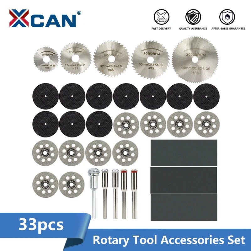 XCAN 33 шт. вращающийся инструмент, аксессуары, лезвие для пилы из быстрорежущей стали, полимерное металлическое отрезное колесо, алмазный режущий диск, лезвие для пилы, шлифовальная бумага, наждачная бумага