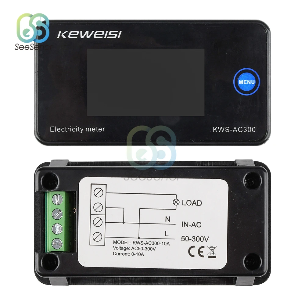 Вольтметр-Амперметр AC 50-300 в 100A 10A, светодиодный цифровой тестер емкости и напряжения