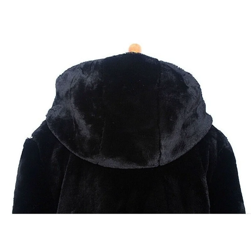 Шуба Lugentolo женская зимняя с капюшоном, модная уличная одежда свободного покроя, Толстая теплая элегантная шуба из черного меха