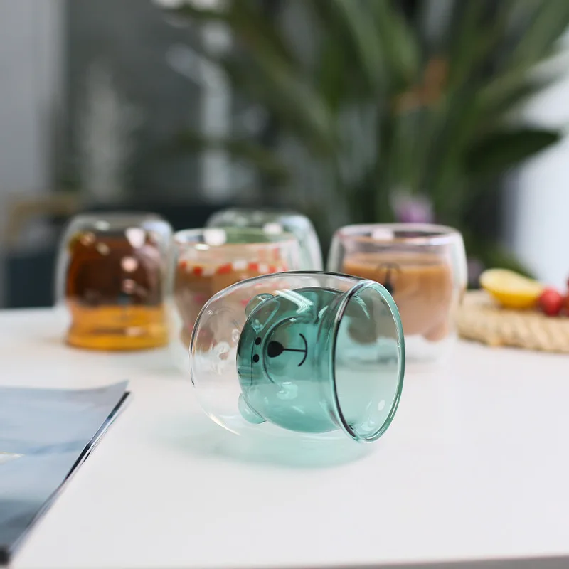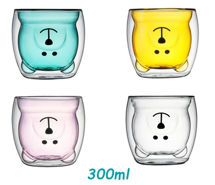 250 мл стеклянные кружки милый медведь двухслойная настенная стекля...