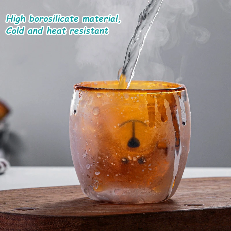 Двойная стеклянная чашка с медведем, кофейная кружка, посуда для на...