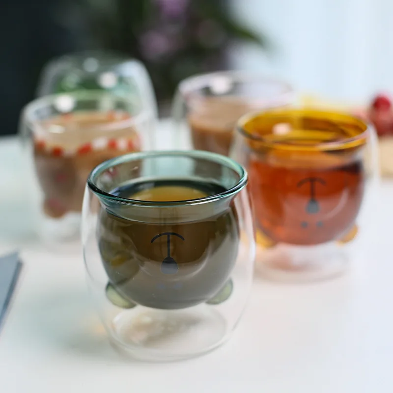Милые стеклянные кружки в форме медведя с двойными стенками, чашка ...