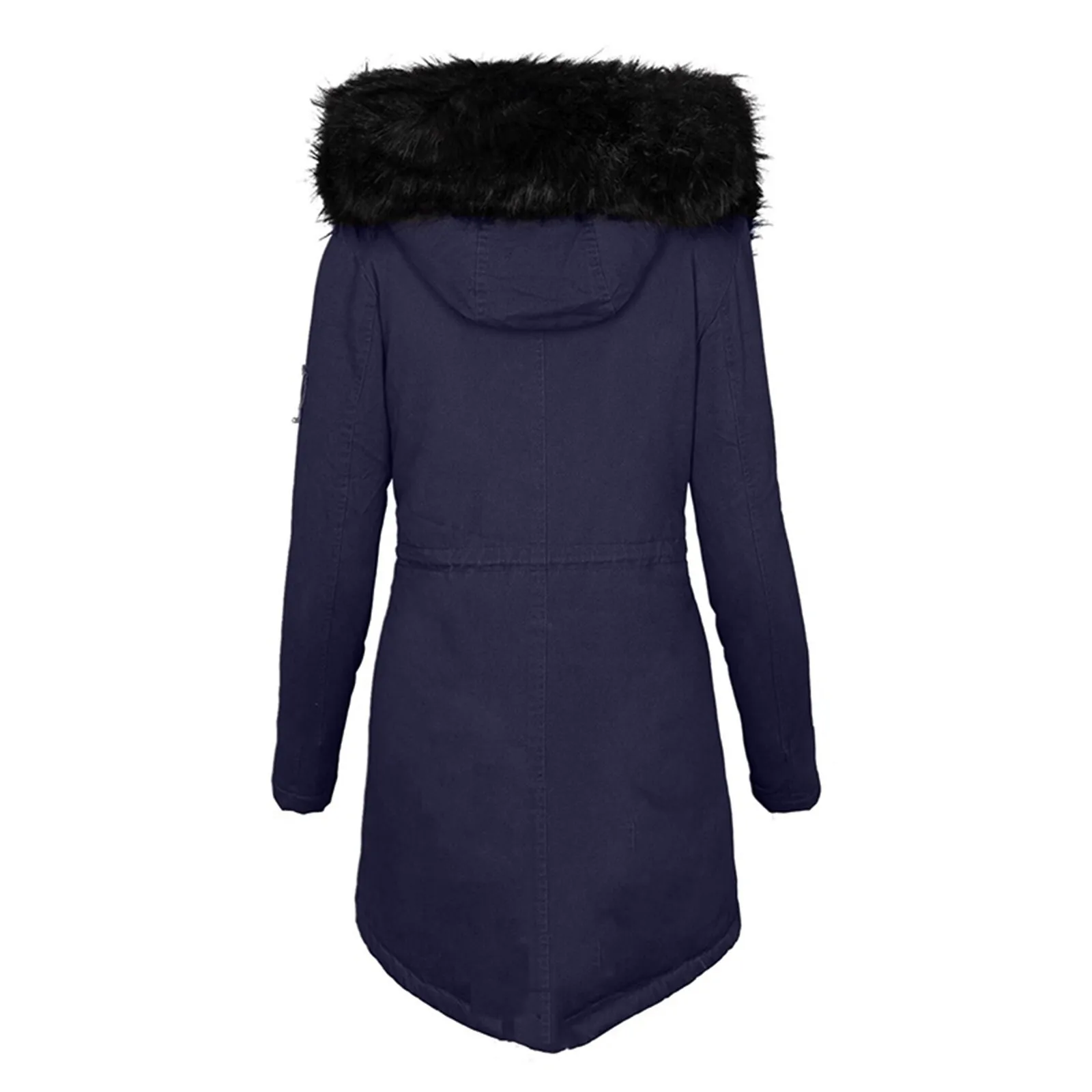 Женское зимнее теплое пальто средней длины с длинным рукавом и капю...