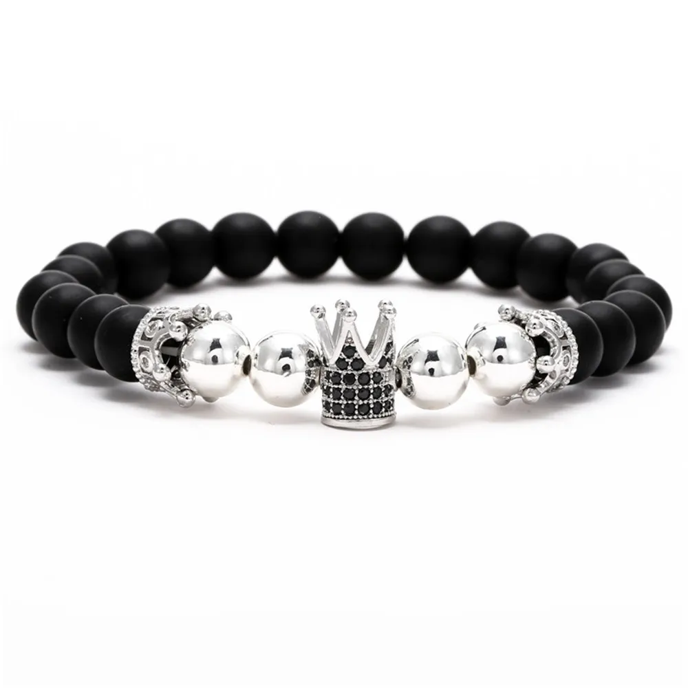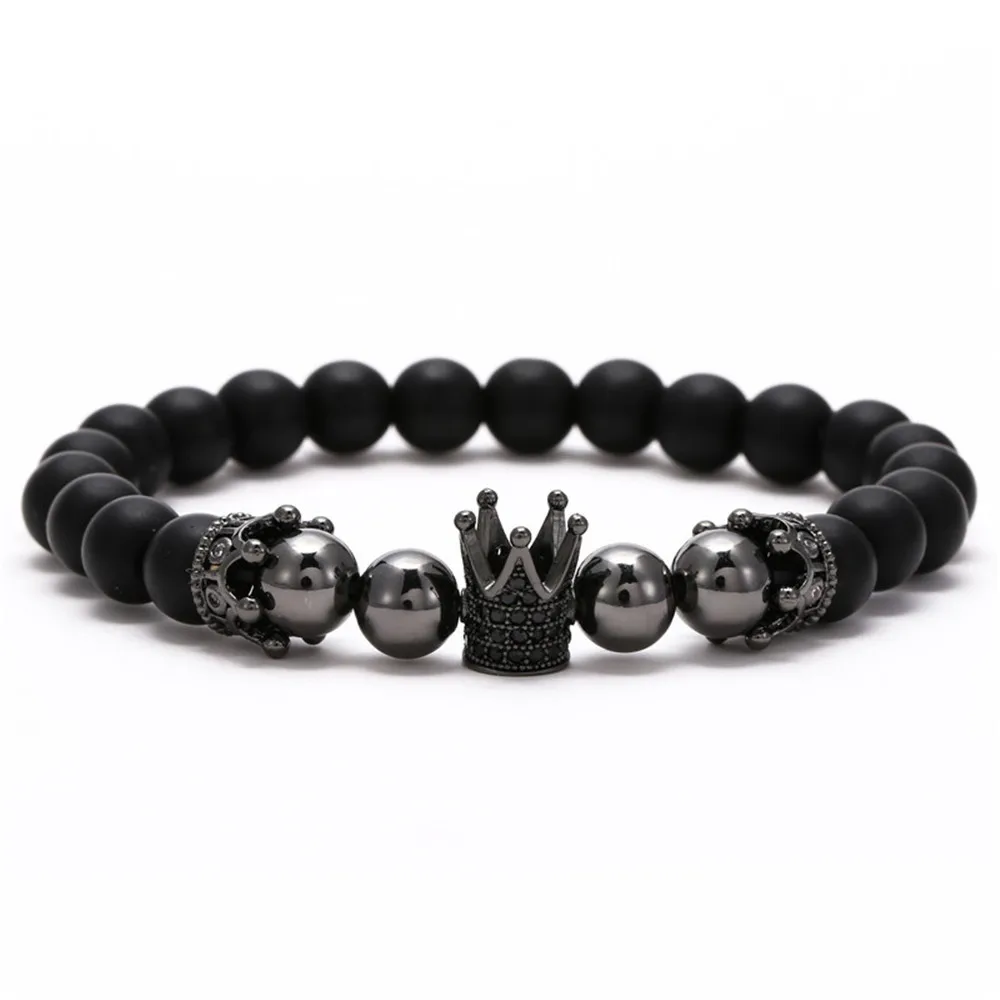 Браслет XQNI из натурального лавы, черный цвет, 8 мм камень, Корона...
