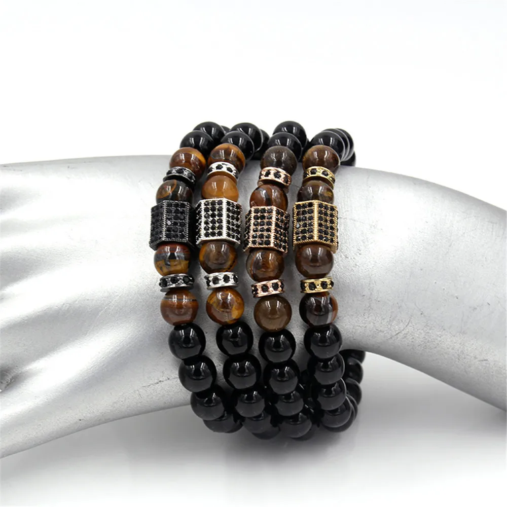 NameMatte Onyx Stone&Tiger Eye Combination Stitching with CZ Men Bracelets
