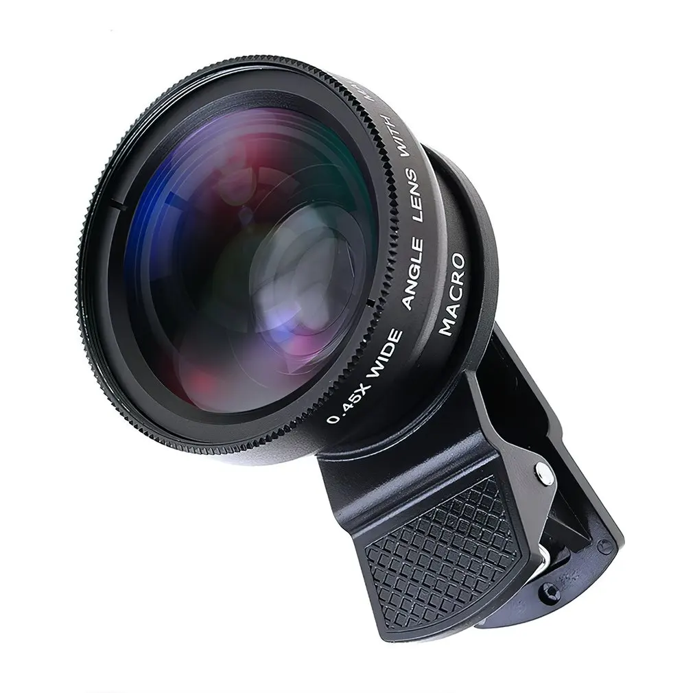 Объектив с двумя функциями, широкоугольный объектив 0,45x и макрообъектив HD-камеры, универсальный для телефонов iPhone, Android, 37 мм