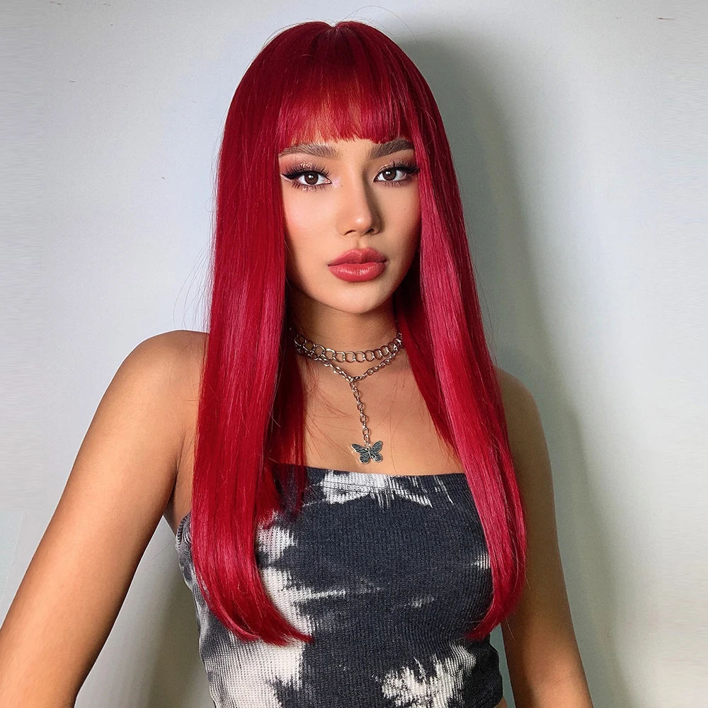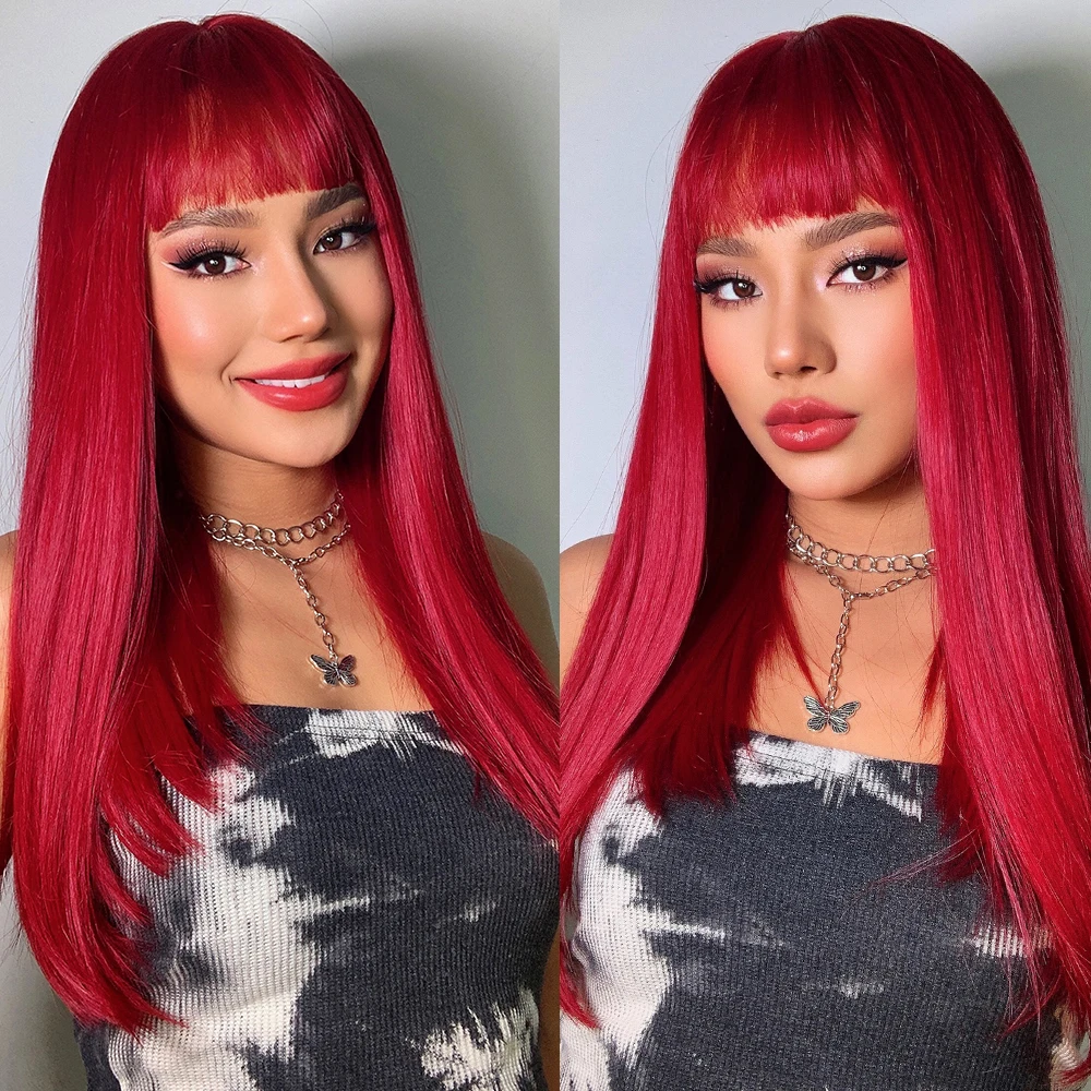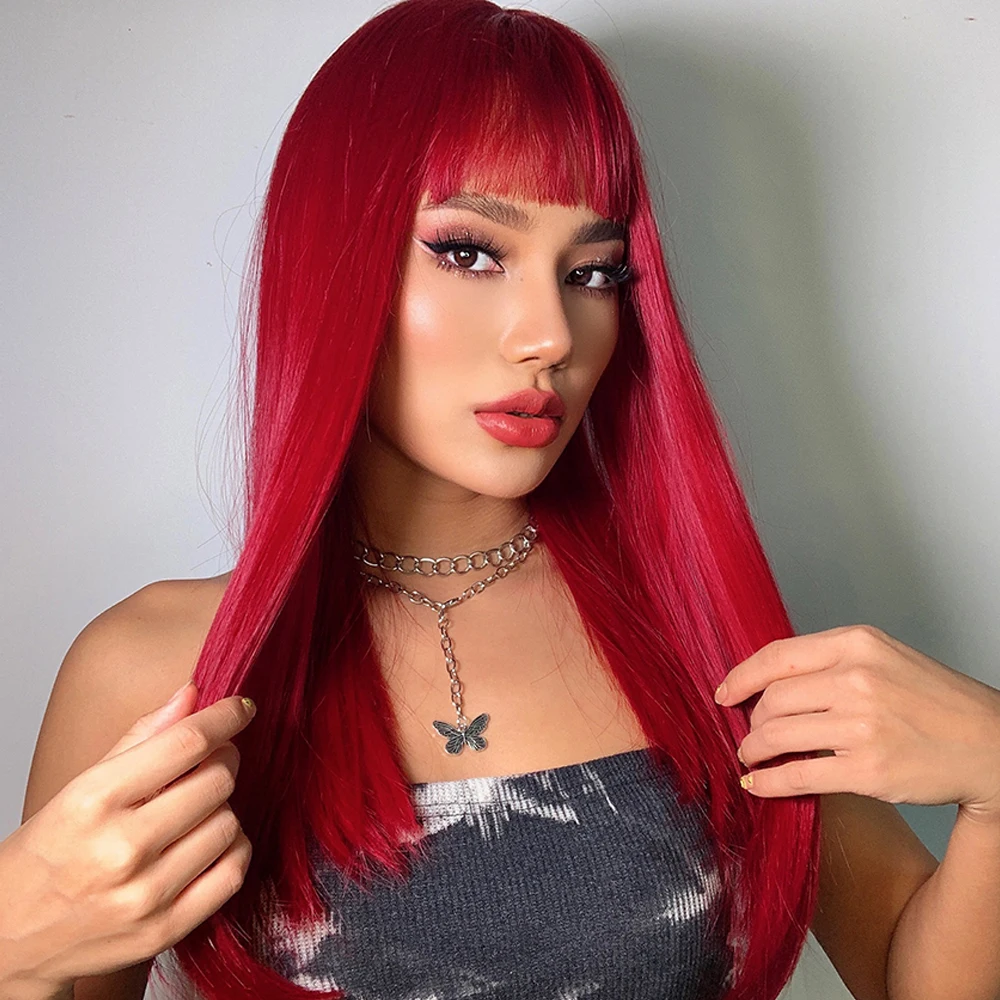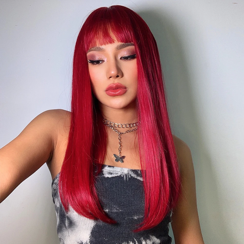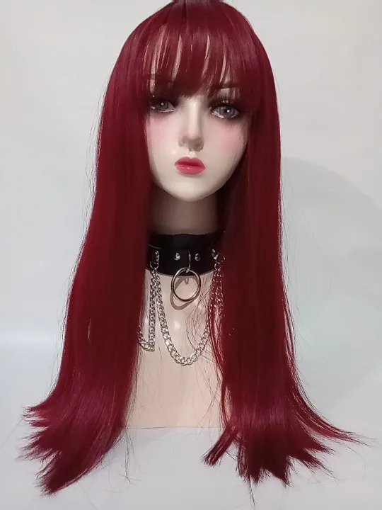 Парики для косплея GEMMA, длинные прямые винно-красные парики с челкой для женщин, Лолита, рождественские вечерние парики на Хэллоуин, Термостойкое волокно