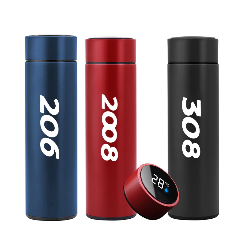 Портативный Стеклянный термос с дисплеем температуры для Peugeot 106, 206, 208, 307, 308, 3008, 207, 208, 407, 508, 2008, 4008, 5008