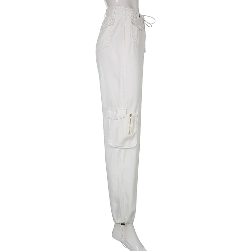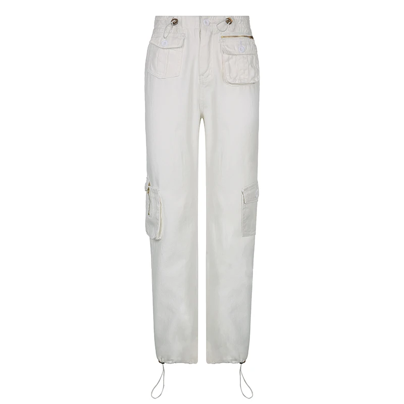 Брюки-карго Женские Мешковатые из денима с высокой талией и пряжкой