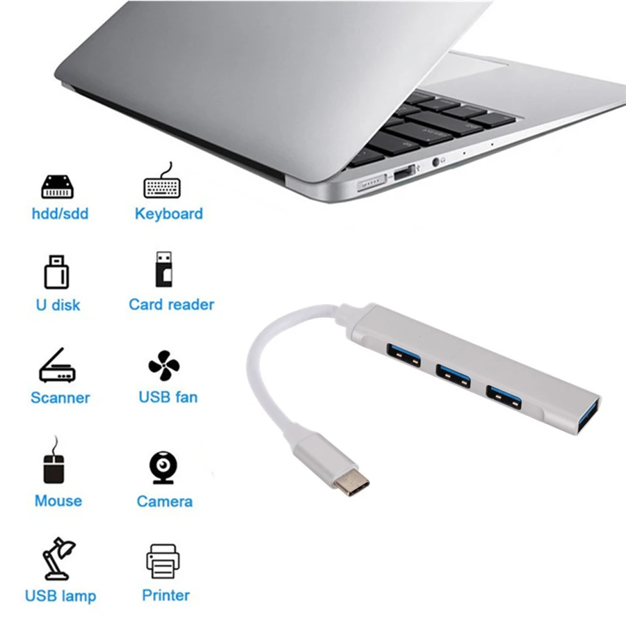 USB C-концентратор, USB C3,0 3,0 2,0 4 порта, мультиразветвитель, адаптер OTG для Lenovo Xiaomi Macbook Pro 13 15 Air Pro, компьютерные аксессуары для ПК