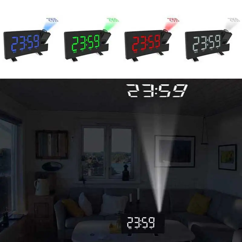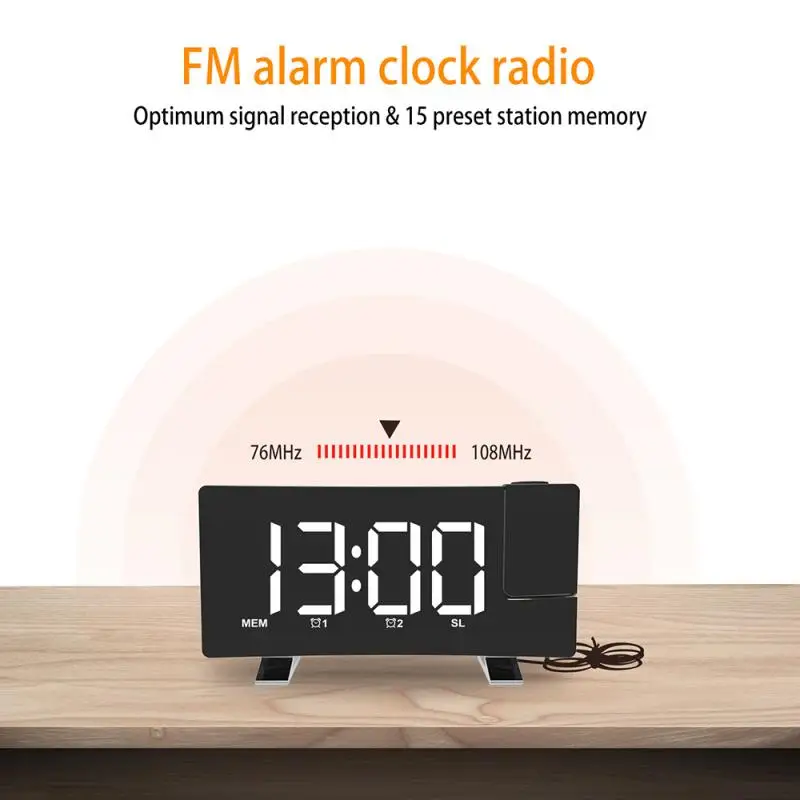 Светодиодный Будильник с цифровой проекцией, электронные настольные часы с функцией повтора и проектором времени, FM-радио, товары для дома и офиса