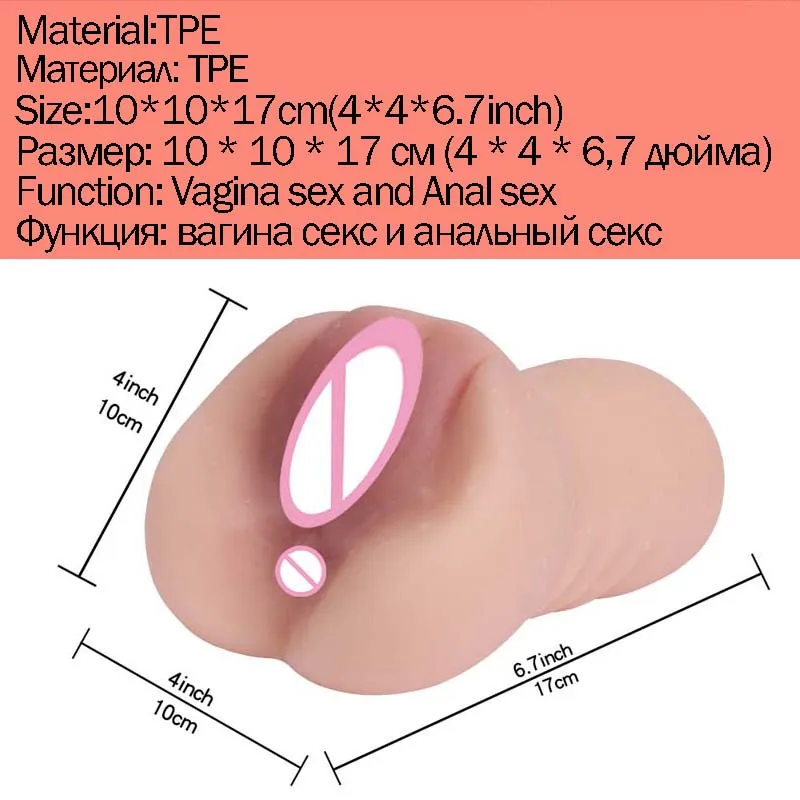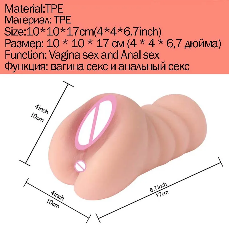 Материал: TPE Размер: 8,5*11,5*16 см Функция: Вагина секс и анальный секс мягкая игрушка