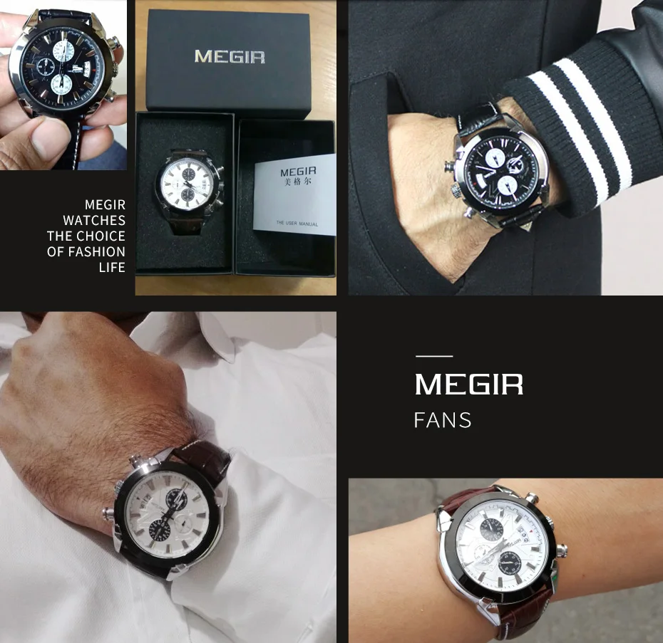 Megir оригинальные мужские кварцевые часы Reloj Hombre кожа бизнес ...