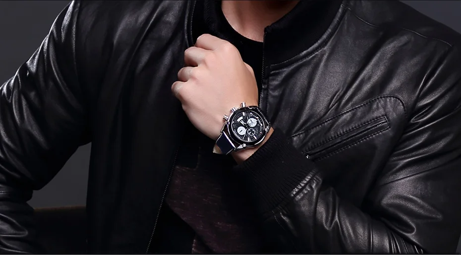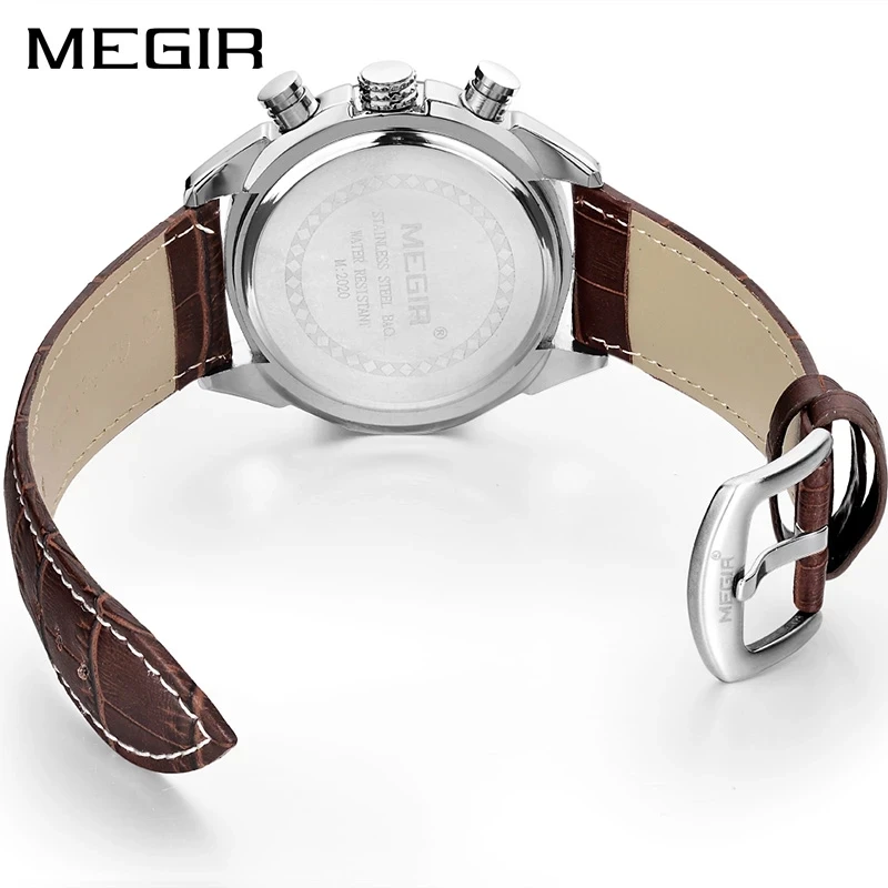 Часы MEGIR мужские с кожаным ремешком, многофункциональные модные т...