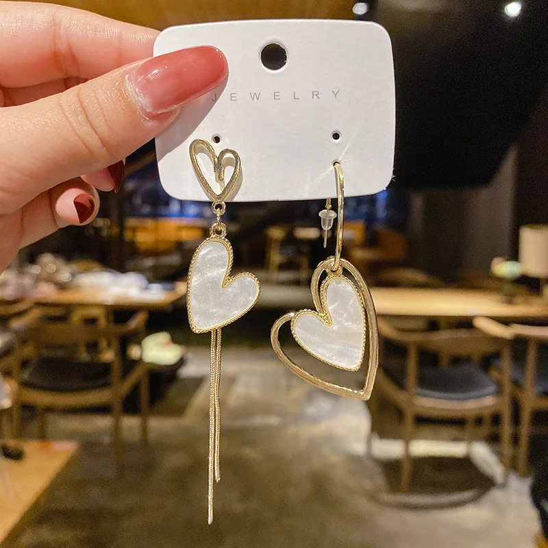 Асимметричные Длинные серьги в виде сердца из серебра 925 пробы с кисточками