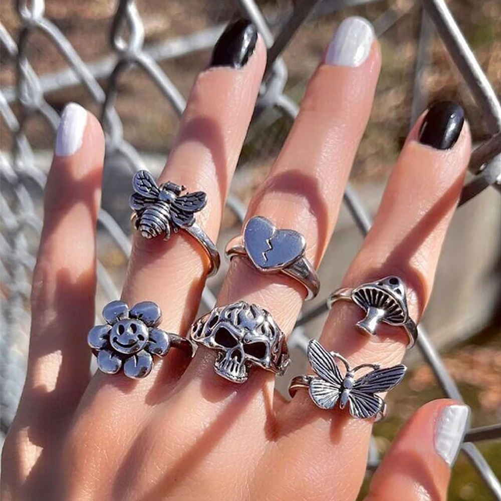 Женский комплект колец в стиле панк и готика, винтажная Посеребренн...