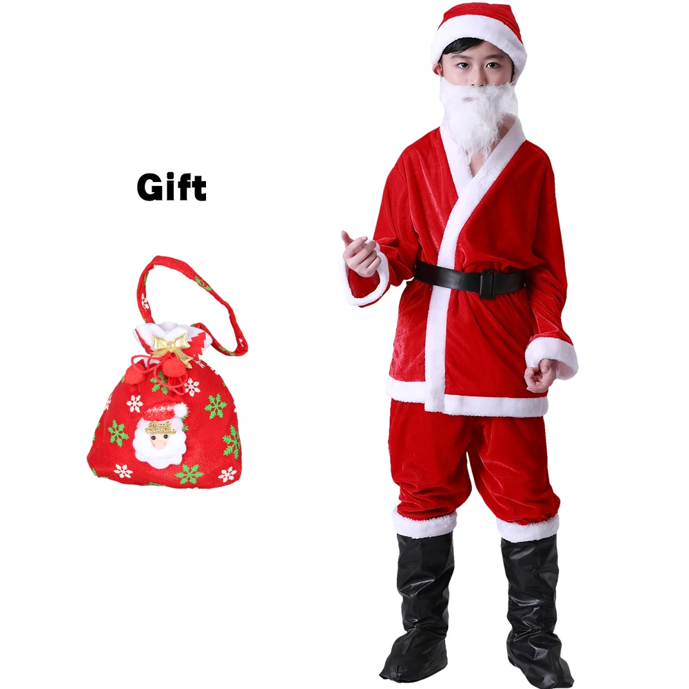 Рождественский комплект из 34 предметов, Детский костюм Санта Клауса с ботинками, косплей, детское платьебрюки + топы + шапка + плащ + ремень