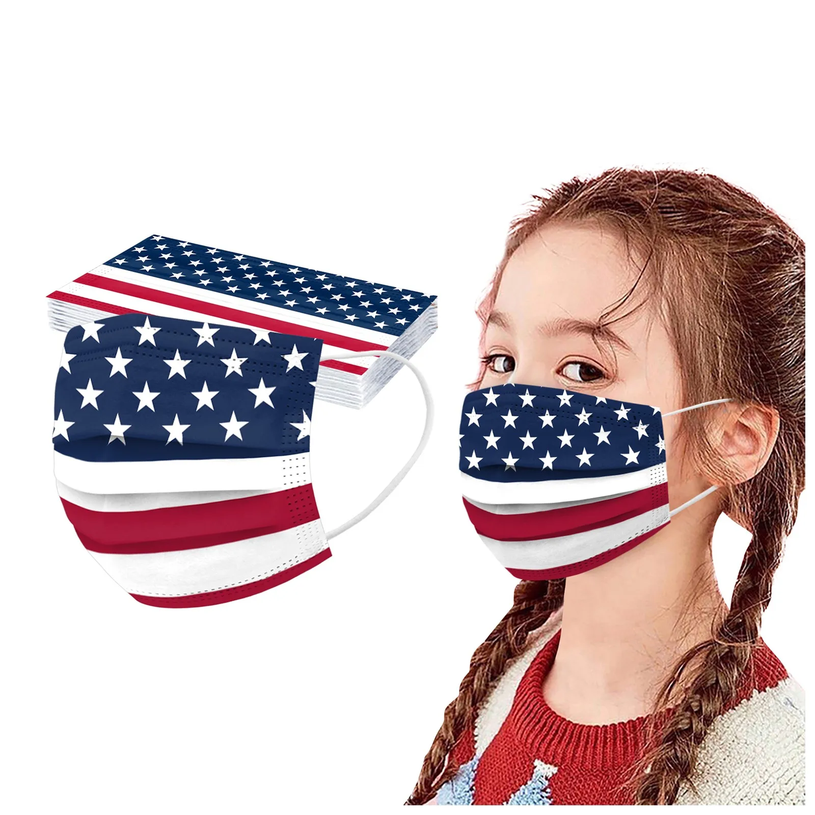 Маска одноразовая детская с американским флагом, Мультяшные одноразовые маски для косплея на Хэллоуин