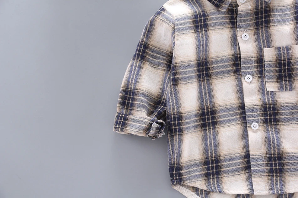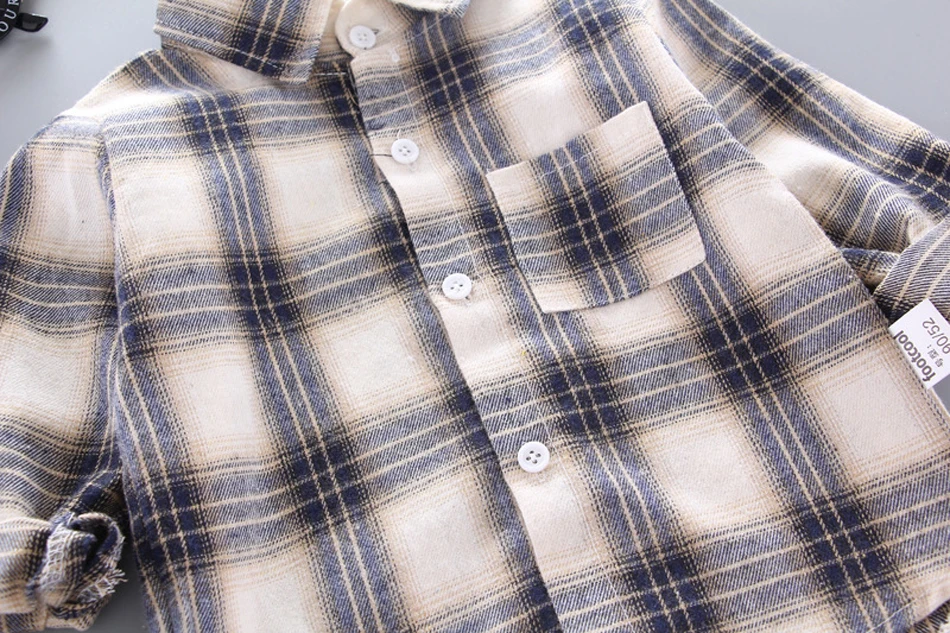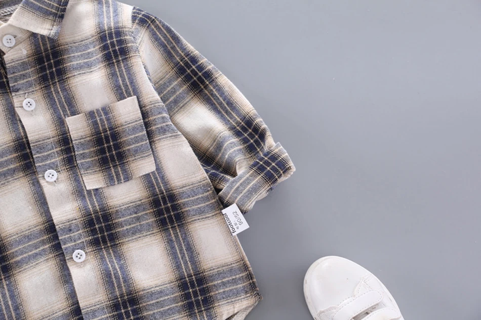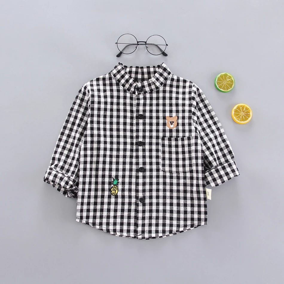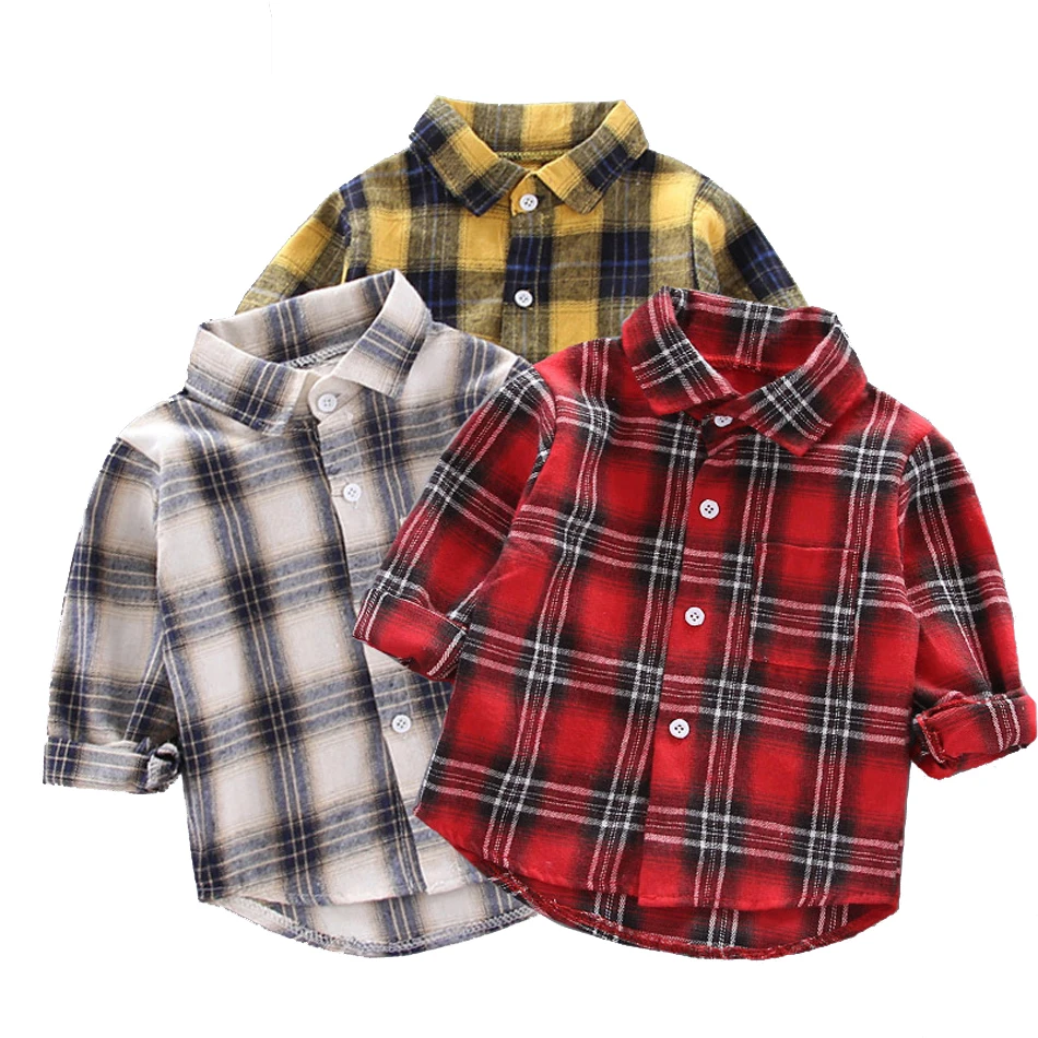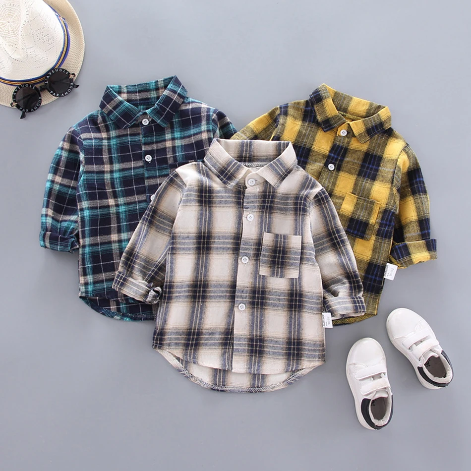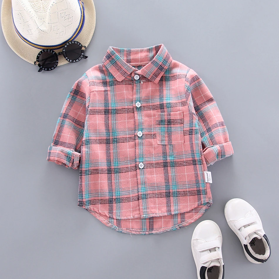 Рубашки с длинным рукавом для мальчиков и девочек, повседневные клетчатые хлопковые топы с отложным воротником, на пуговицах, одежда для школы, весна-осень
