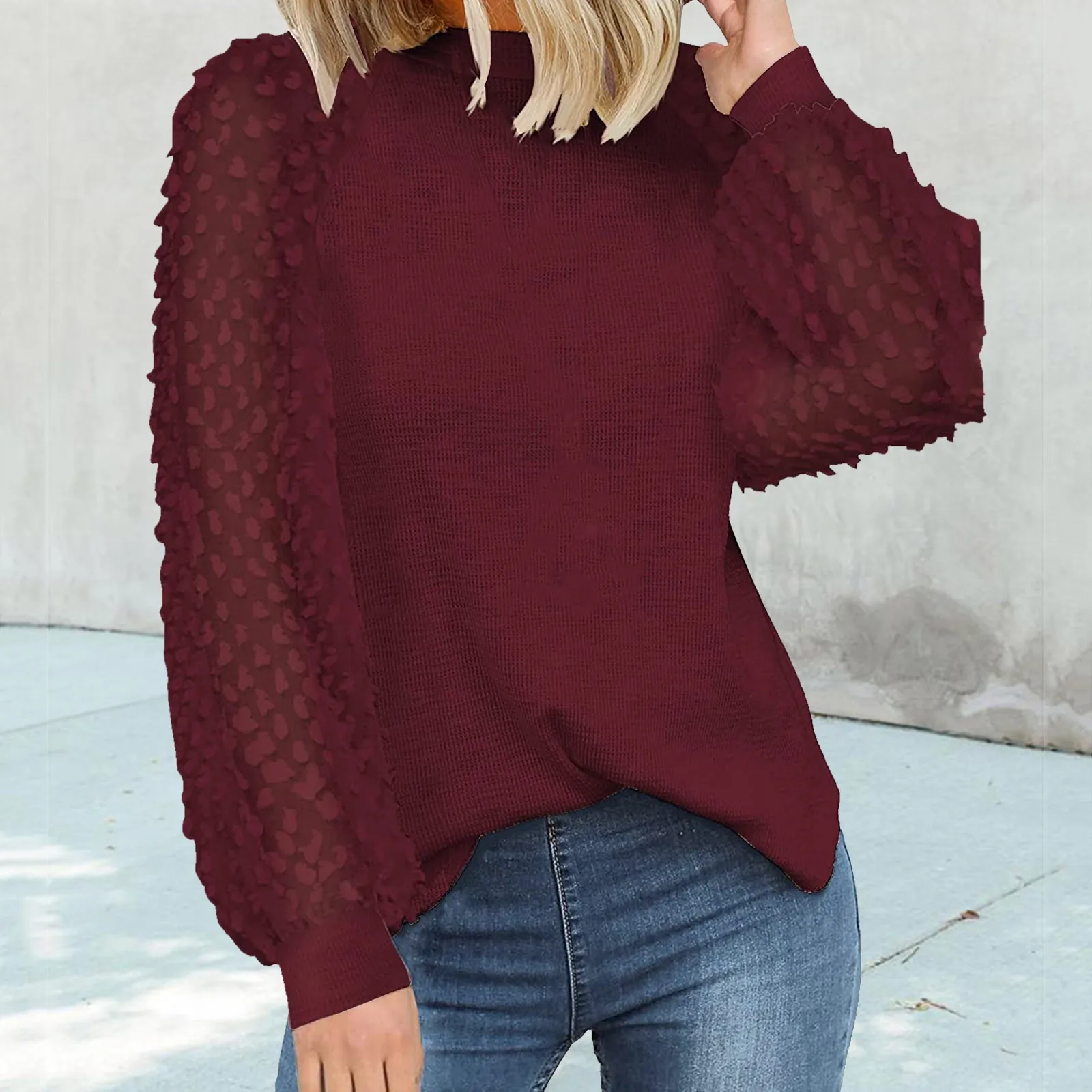 Женский пуловер с длинным рукавом и круглым вырезом, кружевная Повседневная Свободная футболка