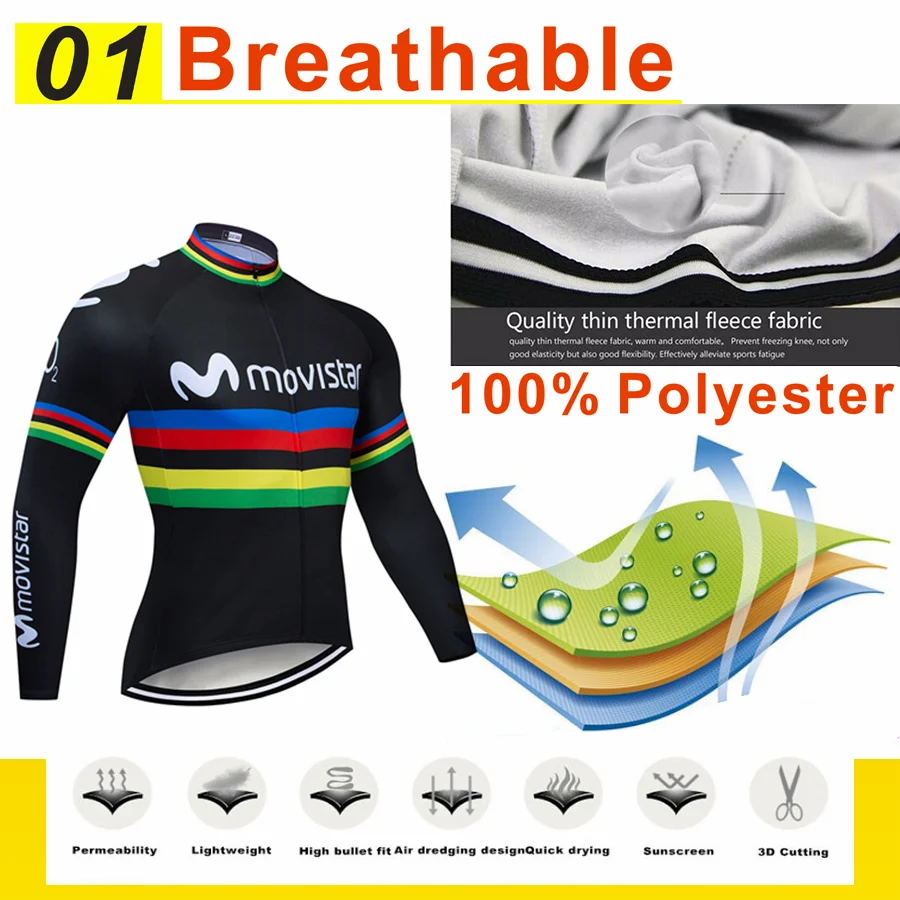 Велосипедная команда Movistar, мужской зимний комплект из Джерси, термофлисовая спортивная одежда с длинным рукавом, Трикотажный костюм для горного и шоссейного велосипеда