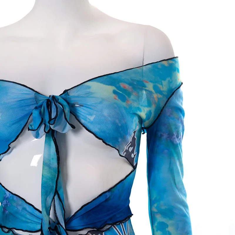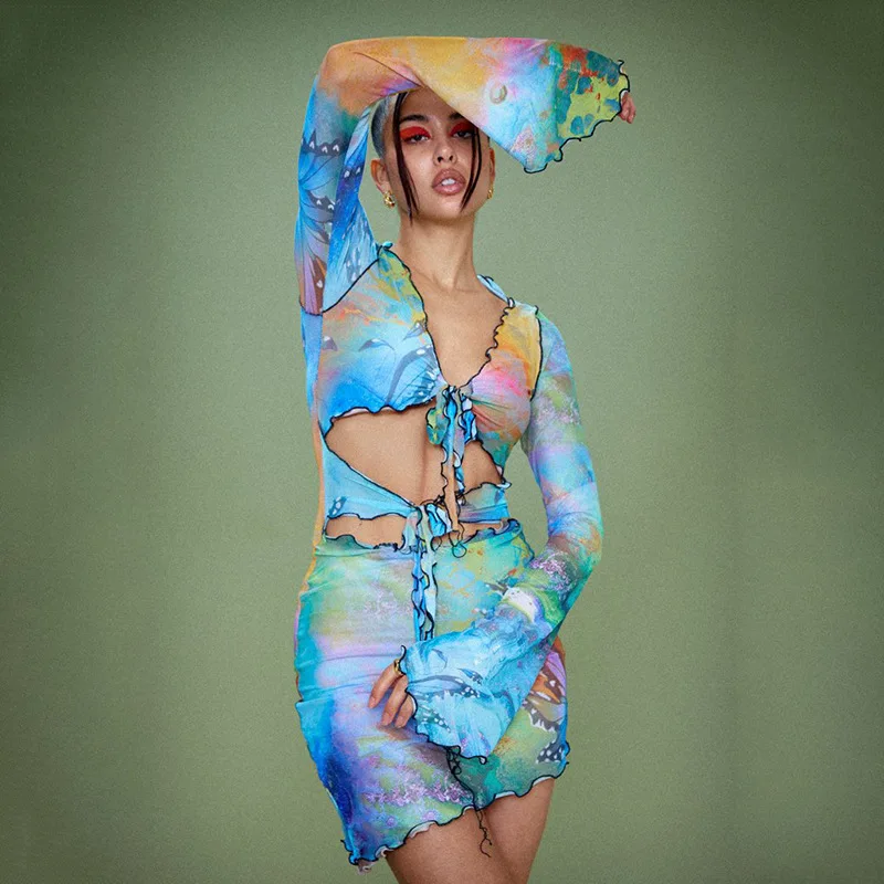 Сексуальные облегающие платья Y2K с вырезами, Сетчатое женское мини...