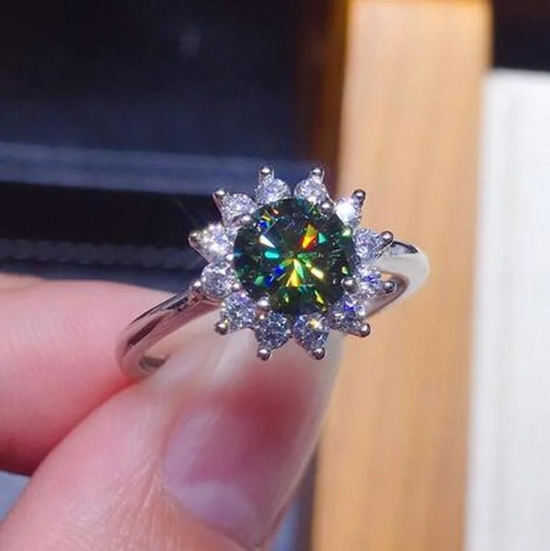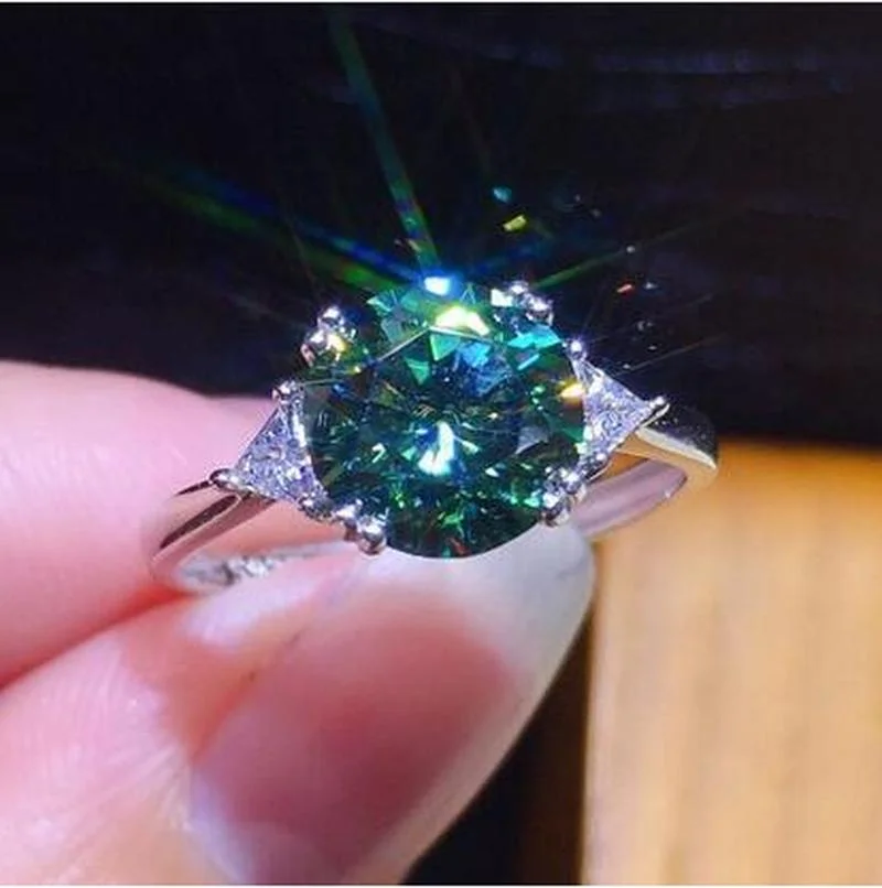 Ручной работы 2ct зеленый Муассанит кольцо 925 серебро обручальное ...