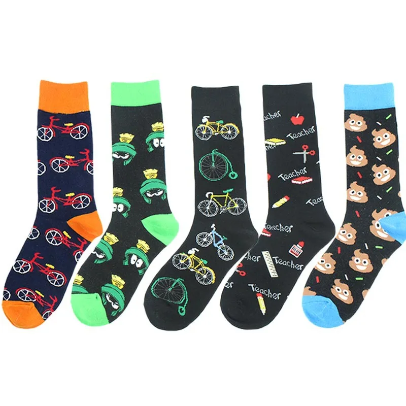 Счастливые забавные мужские круглые дизайнерские модные унисекс индивидуальные до середины икры повседневные Мультяшные велосипедные хлопковые новые носки для женщин