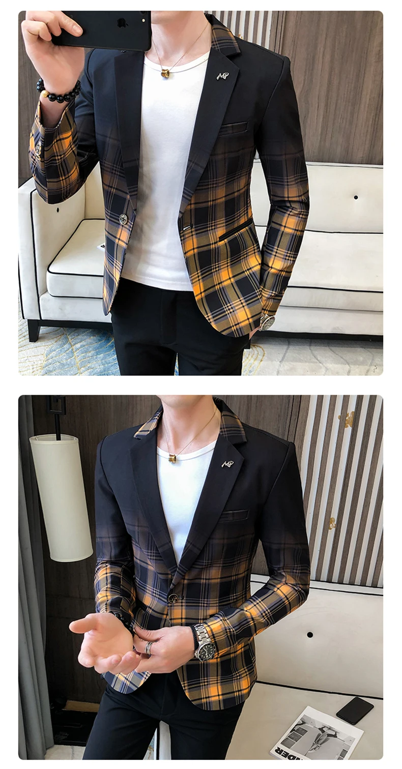 Весна 2021, мужской Клетчатый Блейзер, Модный деловой Повседневный ...