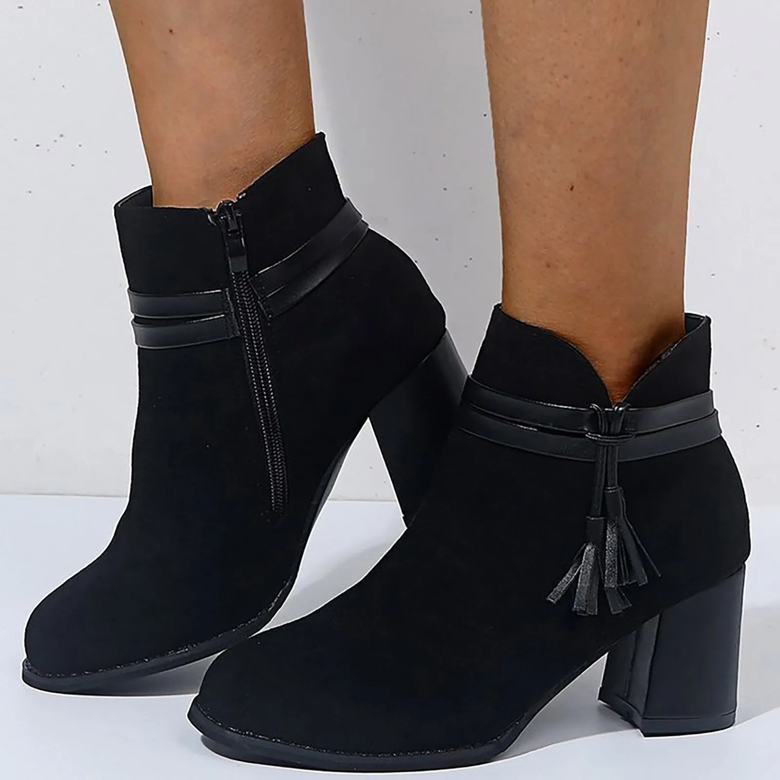 Женские ботильоны на высоком каблуке, повседневные короткие ботинки с круглым носком, без застежки, на квадратном каблуке, весна 2021