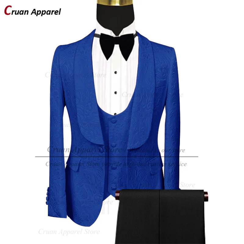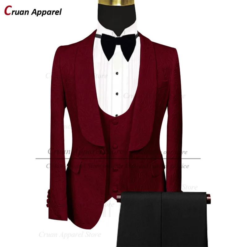 Роскошный Белый Жаккардовый костюм для мужчин, 5 цветов, облегающее свадебное платье, смокинг, шаль, отворот, Блейзер, жилет, брюки, 3 шт.