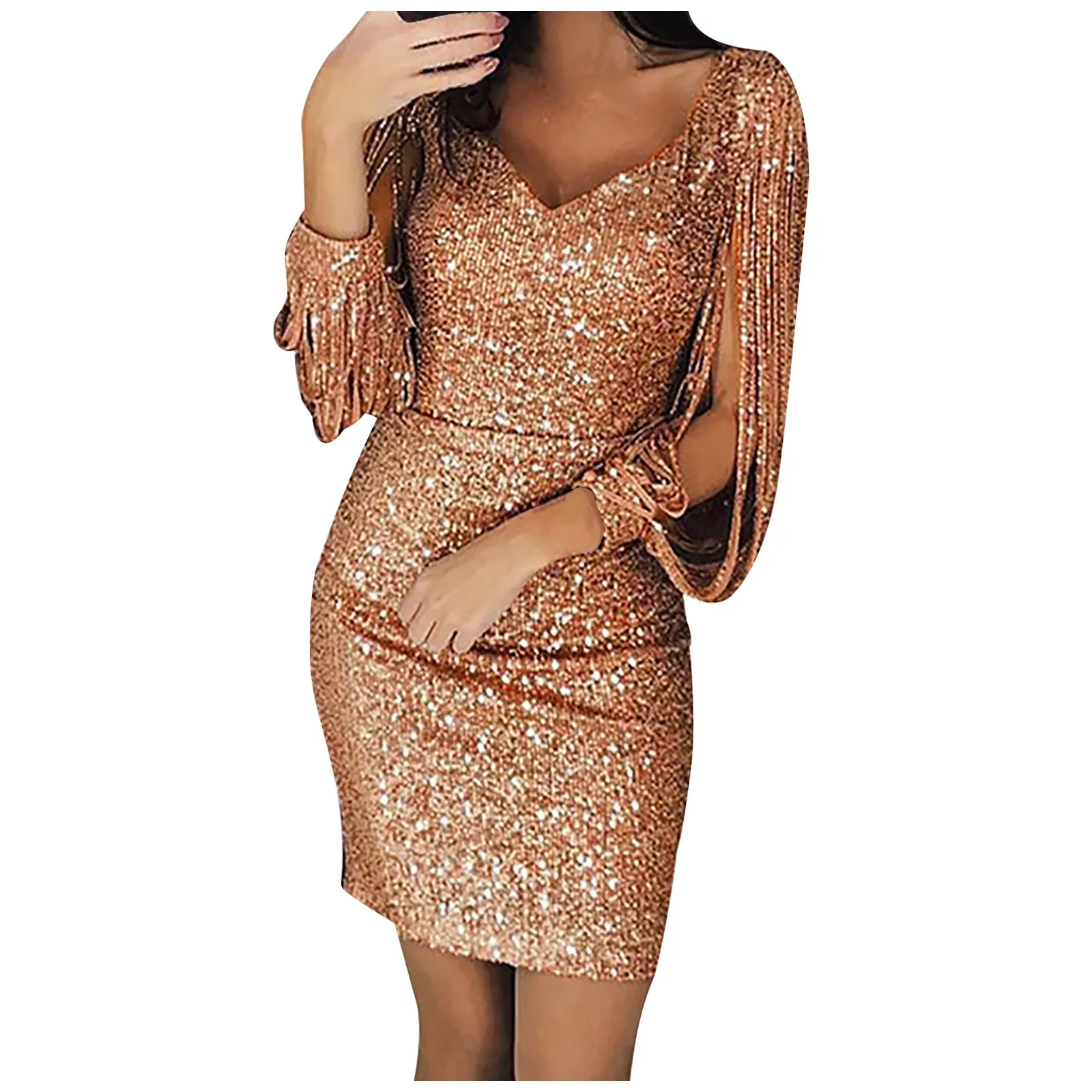 Модные женские платья с блестками, Повседневное платье миди с V-обр...