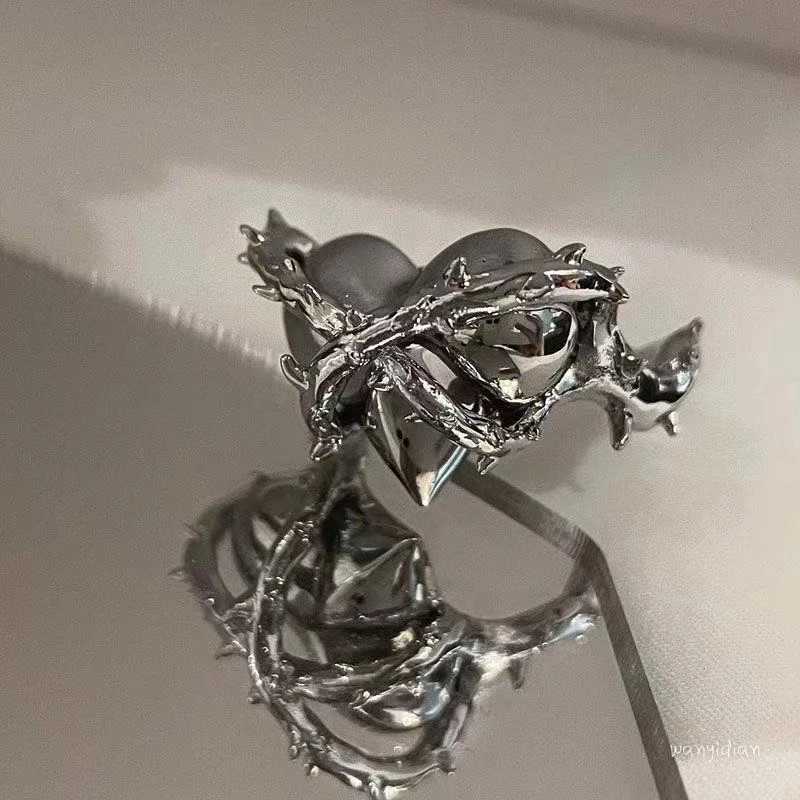 Новые модные креативные панк готические шипы любовное сердце кольцо виниловые Открытые Кольца для женщин ювелирные изделия для вечеринки Подарки Хеллоуин оптовая продажа
