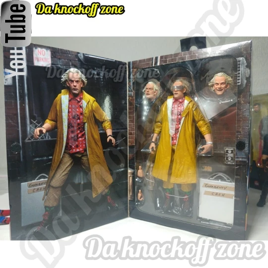 Доктор Браун супер круто. Качество лица хорошее, а также одежда. Это хорошо напоминает сцены фильма. Содержимое коробки было потеряно, а картон разобран и сплющен для лучшей транспортировки, я полагаю. Ничего не было повреждено, но наклейки могут быть обрезаны, чтобы открыть коробку, вы должны знать. Я рекомендую эту модель!